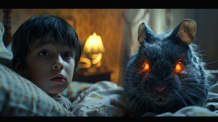 „Jaaaaa“, knurrte der Monsterhamster. „Ich bin Goldie und ich bin hier, um mich für alles zu rächen, was du mir angetan hast!“ Die Bestie fletschte die Zähne, riss sein Maul auf und….