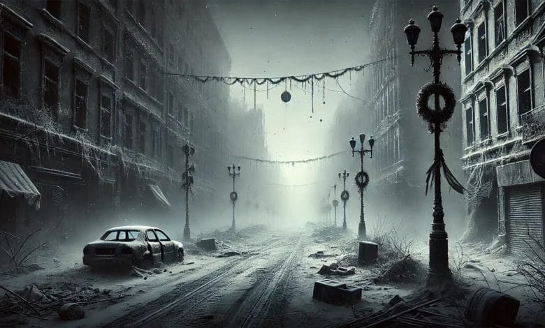 Weihnachtsdekoration, die jedoch nicht länger von Wärme, sondern von Einsamkeit