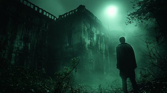 Schließlich kam ich an der Psychiatrie an. Sie sah verfallen aus: Mit abgeblättertem Putz, überwuchert und mit zersplitterten Fenstern.