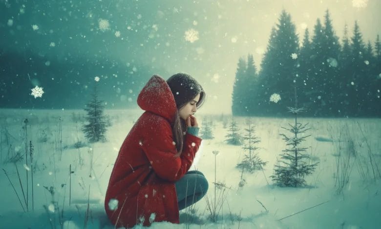 „Dann wird es draußen schneien. Ganz sicher. Das ganze Land, soweit sie sehen kann, wird weiß sein und dichte, dicke Schneeflocken rieseln auf die Tannen und Felder. Sie wird dieses Weihnachtsgefühl haben. Sie wird sich anziehen und nach unten gehen. Es riecht im Haus schon nach Frühstück, aber es ist noch nicht fertig. Sie wird nach draußen gehen und Mutter wird sie fragen, wie lange sie bleibt. Rosie wird sagen, dass sie zum Frühstück wieder da ist und dann geht sie raus auf die Felder und wird es genießen, wie der Schnee still auf die Welt fällt. Er verschluckt allen Lärm. Es ist ganz ruhig. Sie hört nur das Knirschen unter ihren Schuhen und ihren eigenen Atem wenn sie will. Und mit dem Schnee fällt Stille auf sie. Eine weiße, verzauberte Weihnachtswelt. Sie wird so lange draußen bleiben, wie sie möchte und es genießen, nichts zu hören. Dann wird Mutter sie zum Essen rufen und sie wird wieder herein kommen. “