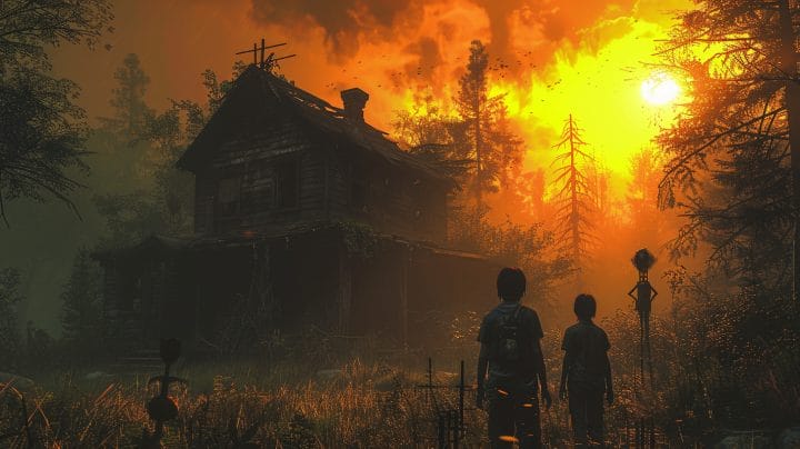Die Bäume lichteten sich als ich einen kleinen Hang hinauftrabte und dann erblickte ich Sam, welche vor einem längst verfallenen, irgendwie sehr gruselig ausschauendem land- oder Bauernhaus stand und wild mit den Armen fucheltete. „Guck dir das an!“ rief sie total verängstigt und schockiert zu mir. Ich blickte fragend in ihre Richtung und verstand nicht recht was so außergewöhnlich oder angsteinflößend an dem Haus gewesen sein sollte, als ich genauer hinsah, noch während ich auf Sam zuging. Die Fenster waren scheinbar von innen mit schwarzer Farbe komplett bestrichen worden, sodass man nicht mehr hineinschauen konnte. Überall an der Veranda hingen eigenartige, aus sämtlichen im Wald zu findenden Materialien, gebaute Figuren welche an hässliche miniatur Vogelscheuchen erinnerten. Als ich schließlich neben Sam stand, umschloss ich sie mit meinen Armen und wir blickten gebannt auf das zerfallende Gemäuer. „Ich möchte wieder nach Hause, Vic.“ flüsterte sie halb abwesend, halb ängstlich. „Wie kann es sein, dass wir das Haus noch nie gesehen haben? Wie lange laufen wir jetzt schon durch diesen Wald?“. Ihr Satz endete kaum hörbar. „Seit ich denken kann.“ , antwortete ich genauso leise und schloss meine Arme fester um sie. Das war wohl mehr als selbstsüchtig aber ich musste diese Situation ausnutzen. Wann war Sam schon mal so geschockt und verängstigt, als dass ich sie so nah bei mir haben könnte.